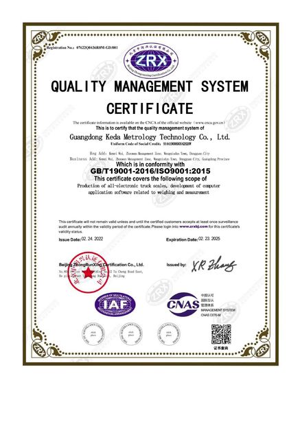 मानक: | GB/T19001-2016/ISO9001:2015 |