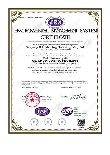 मानक: | GB/T24001-2016/ISO14001:2015 |